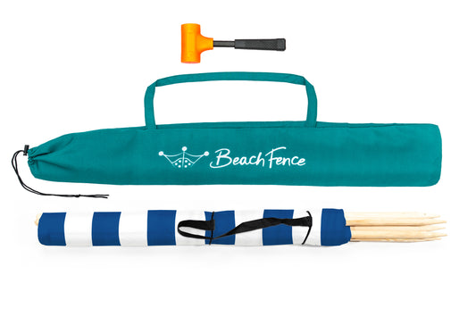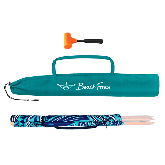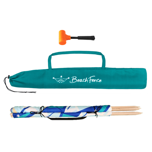 EMERALD BLUE - 20 ft Beach Windscreen, Rubber Mallet and Carry Bag Included