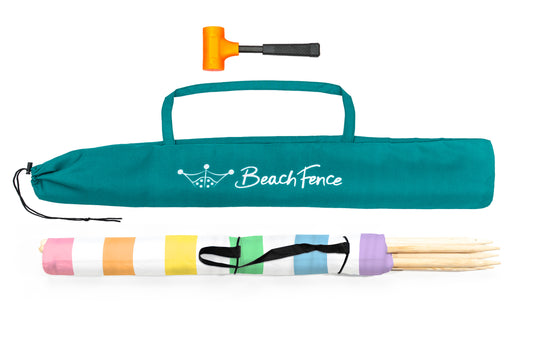 BEACH COLORS - 20 ft Beach Windscreen, Rubber Mallet and Carry Bag Included